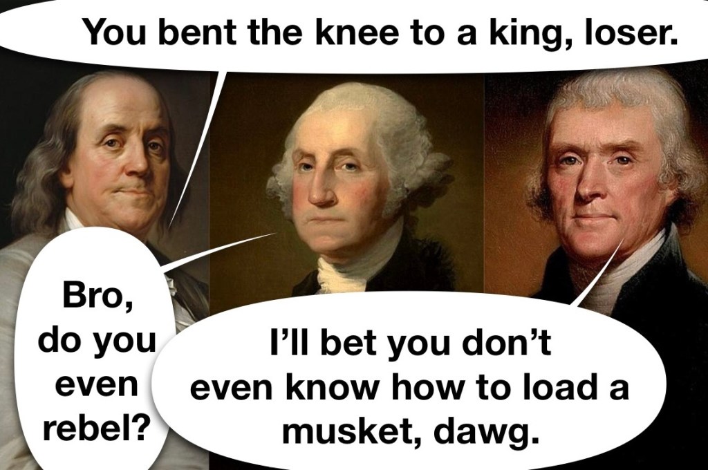 The Founding Fathers didn’t have one-tenth of the causes for revolution that you do.