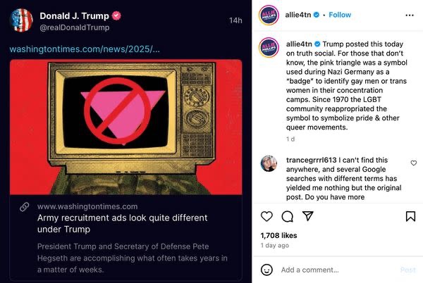 You have the president of the United States posting the Nazi pink triangle (used to distinguish LGBTQ people in the ghettos) on Truth Social.